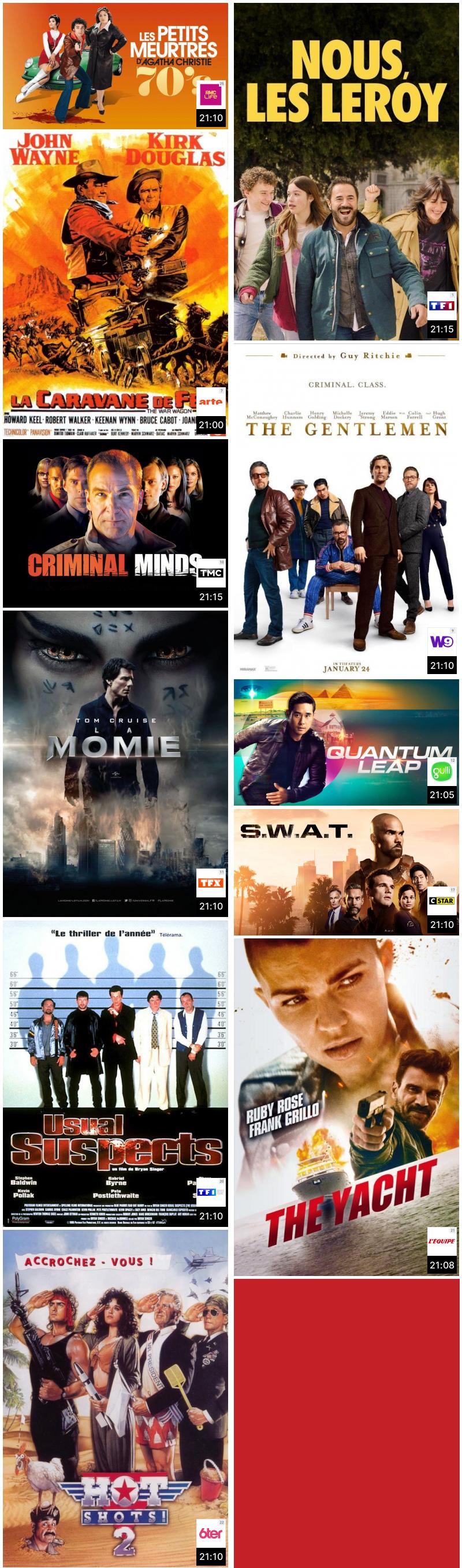 Les films et téléfilms, séries et documentaires de votre soirée sur les chaînes de la TNT gratuite.