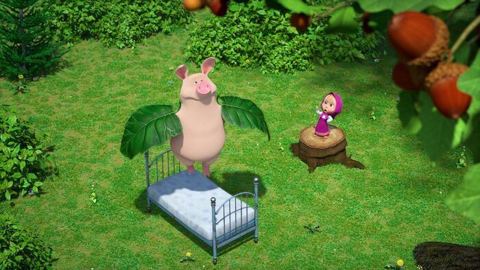 Une fois par an, Masha peut se montrer responsable. Aujourd'hui, elle a pris un badge de Michka elle-même. Elle l'a perdue elle-même. Elle le retrouvera elle-même ! Il suffit de démarrer une vieille tondeuse à gazon et de tondre toutes les orties pour qu'elles ne gênent pas la recherche. Quelle matinée tranquille.